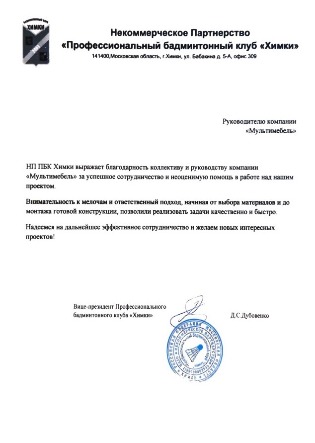 | ООО "Берега Групп" | Бадминтонный клуб "Химки" | Фитнес центр "Powerhouse GYM" |